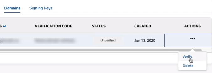 4. In the domain’s corresponding Actions column, click the ellipses (...) and then click Verify.