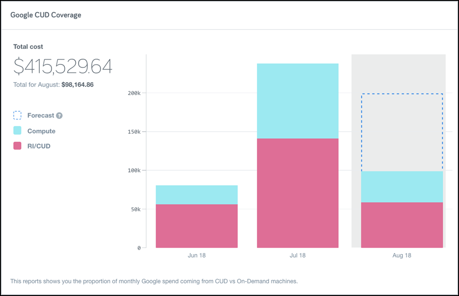 These reports shows you the proportion of monthly and daily Google spend coming from CUD vs On-Demand instances.